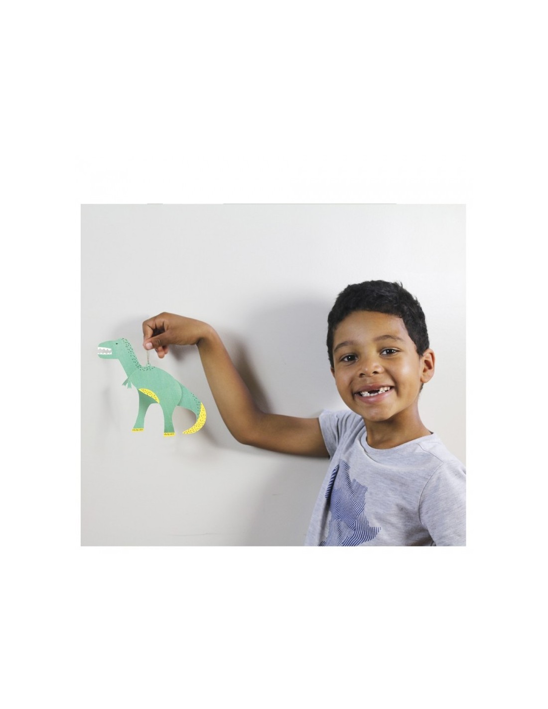 Chaque dinosaure est composé de deux pièces en papier cartonné qui s’assemblent avec simplicité. Une fois montés, ils pourront être coloriés puis posés ou bien suspendus au bout d’un fil doré.