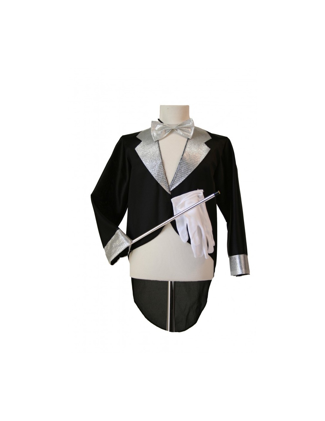 Déguisement MAGICIEN comprenant redingote , gants , baton , noeud papillon. Déguisement fabriqué en FRANCE. Présenté sous housse.