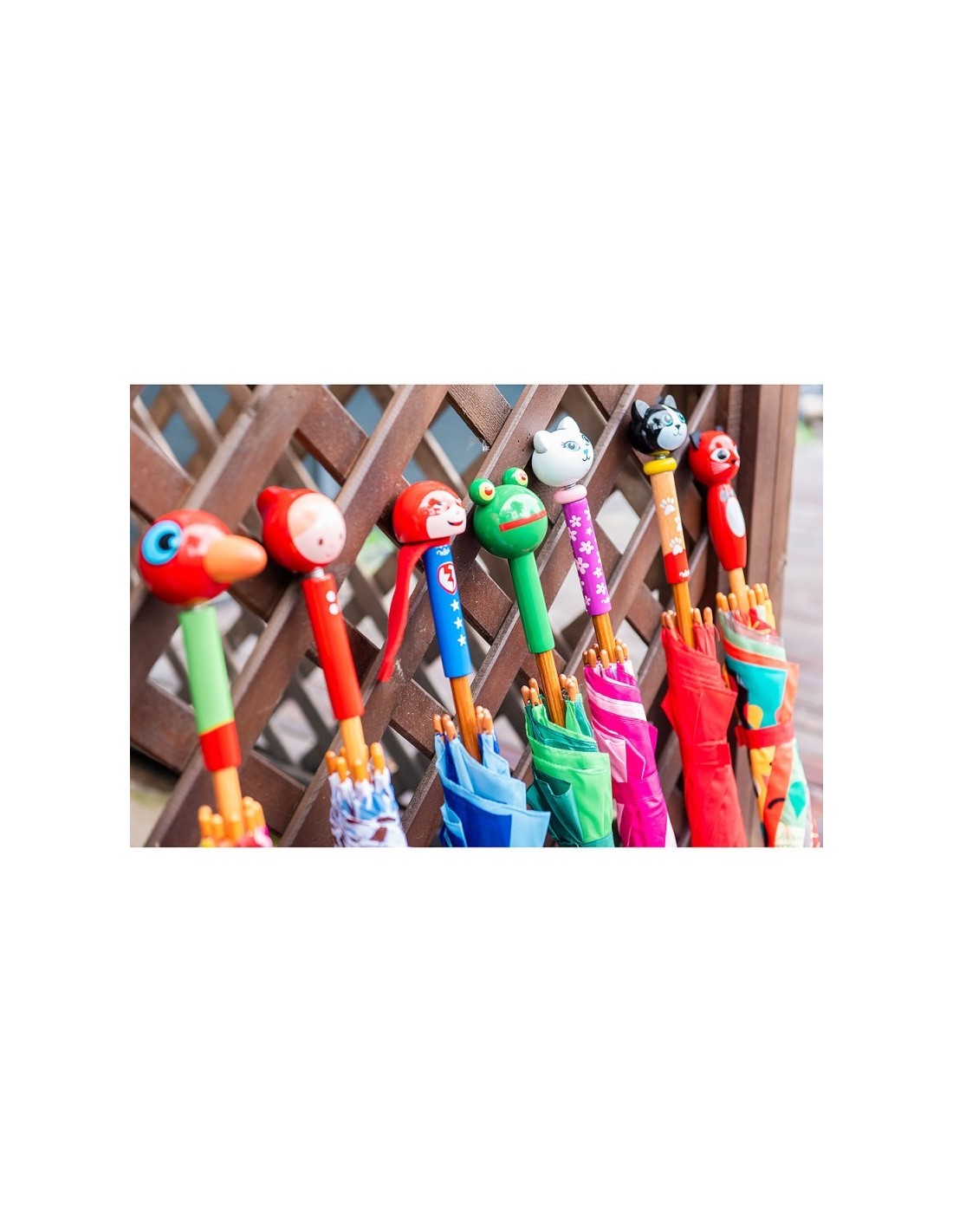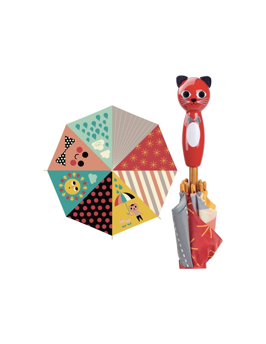 Parapluie chat en bois illustré par Ingela P. Arrhenius. Fabrication française.
