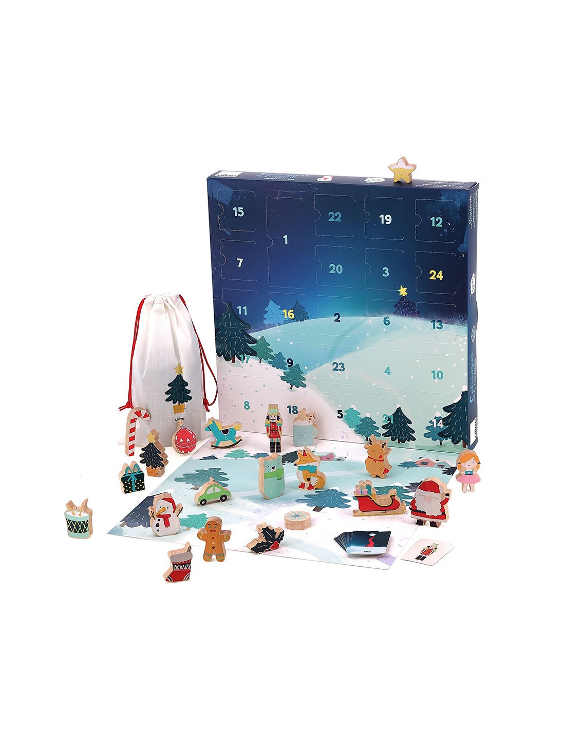 Quoi de plus merveilleux que d’attendre la venue du Père Noël en ouvrant chaque jour de décembre une petite case de son calendrier de l’avent ? Dans cette version, pas de chocolat, mais des cartes et des figurines en bois, afin de reconstituer notre jeu emblématique de reconnaissance tactile « Touche et trouve ».