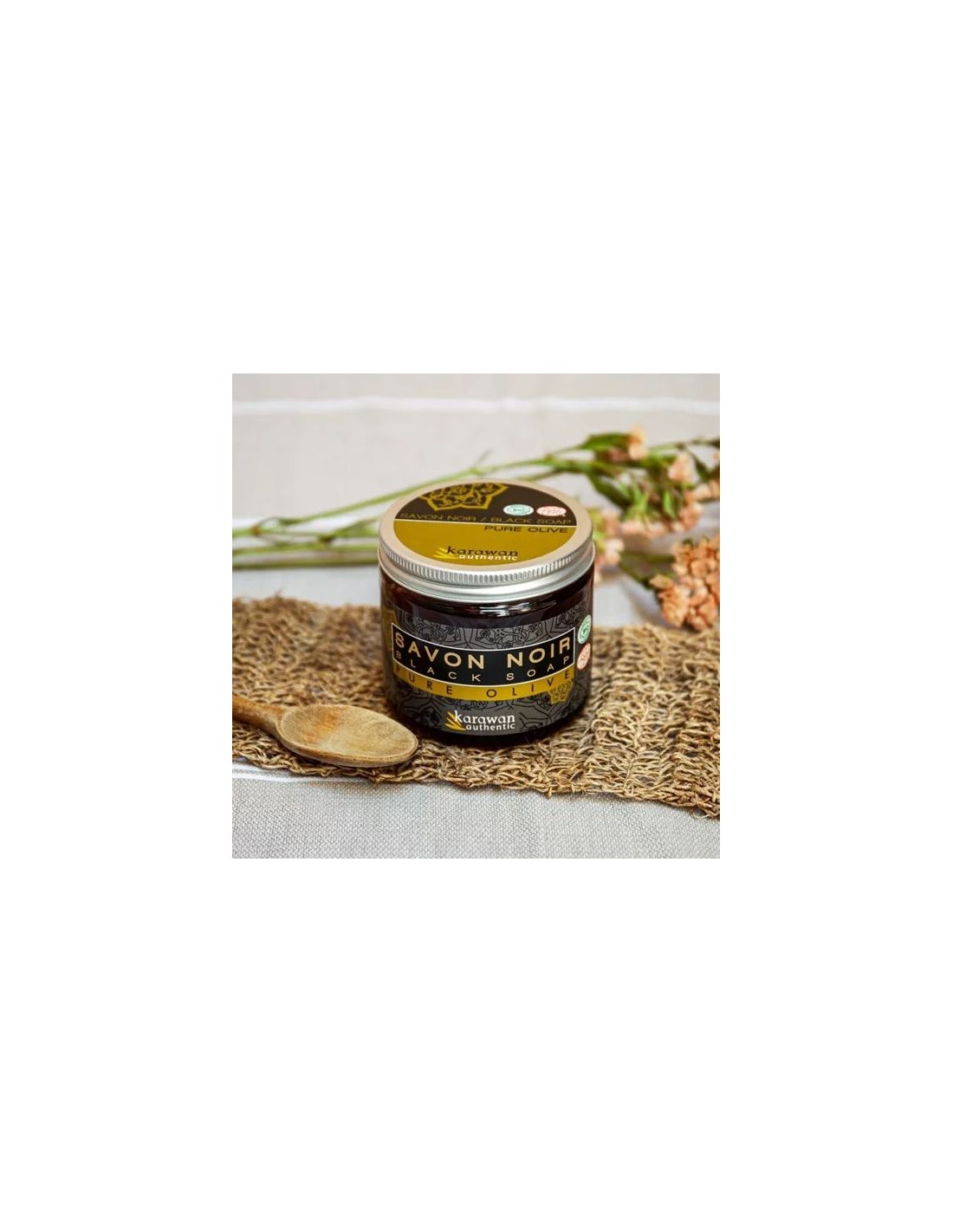• 1 Savon noir pure olive, certifié biologique par Ecocert, 200 ml