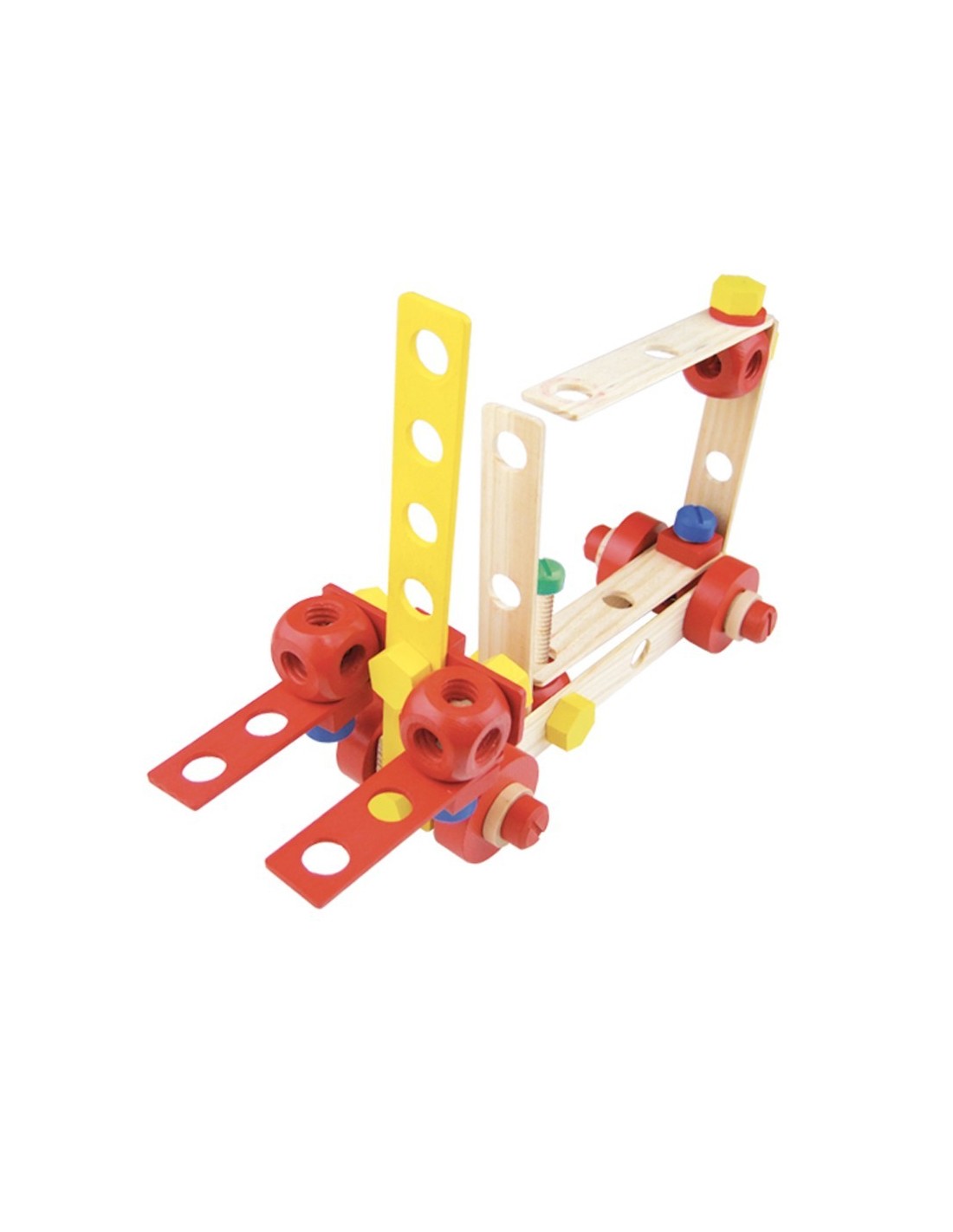 Coffret complet et idéal pour réaliser ses premières constructions en bois et pour développer l'imagination des enfants. 106 pièces à assembler.