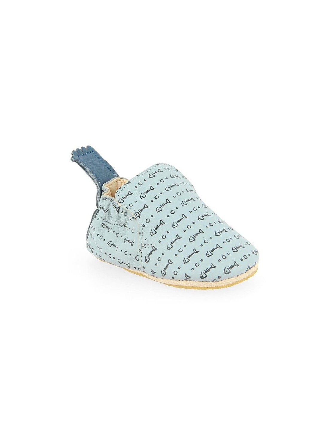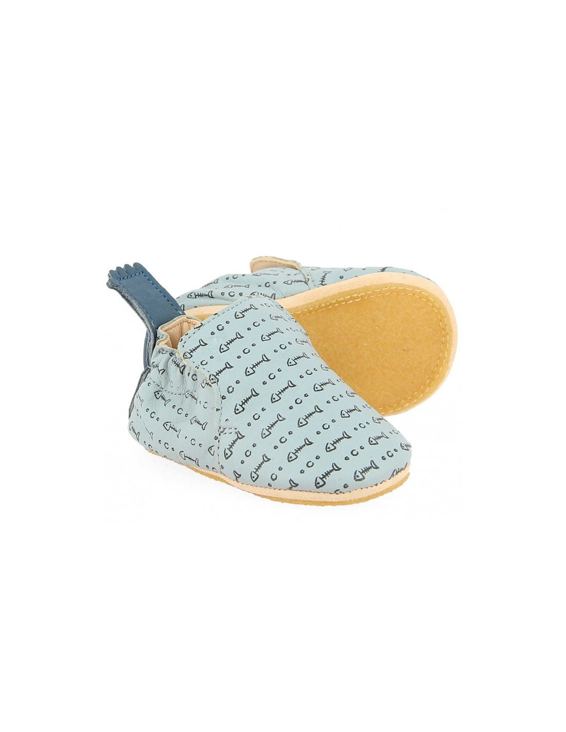 Chaussons cuir Blublu Pesce écume/noir avec...