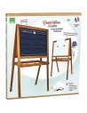 Tableau Triptyque 'La Forêt' : Tableau en bois teinté chêne avec une ardoise centrale pour écrire à la craie et deux volets avec une face pour la craie et une face avec une planche pédagogique Deyrolle ‘La Forêt’. Plumier en bois et accessoires : boîte de 3 craies et brosse à tableau.