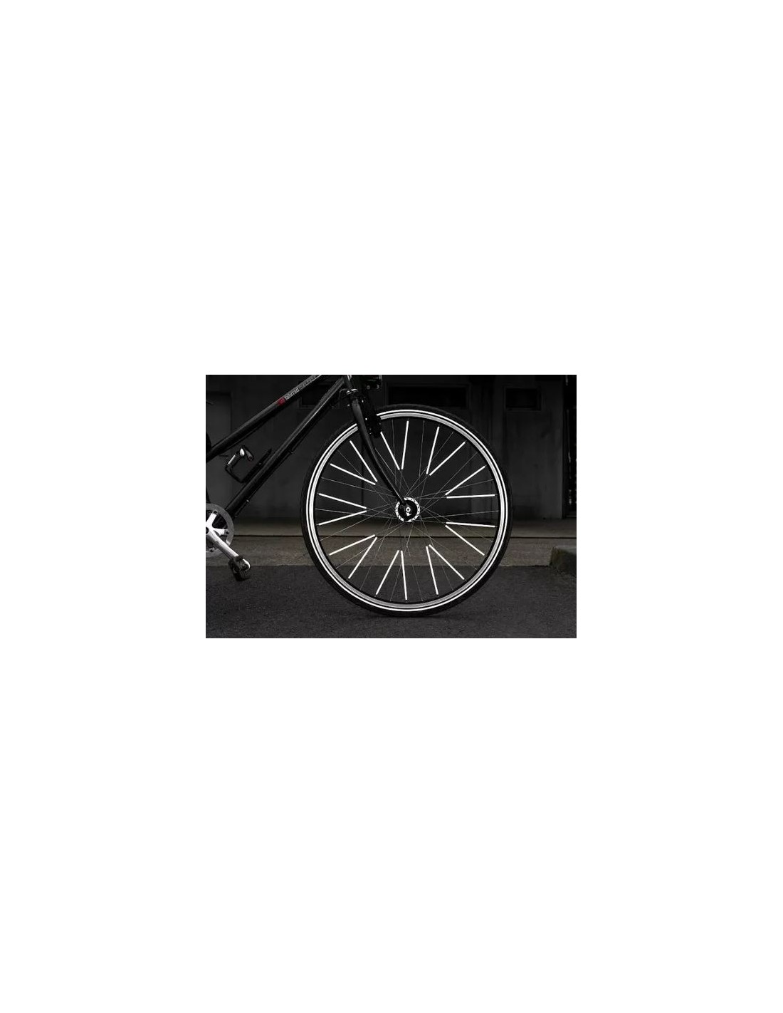 Nos réflecteurs sont vendus par pack de douze, cependant il n’y a pas de règles. Certains aiment en mettre beaucoup, d’autres les préfèrent par petites touches. Sur notre vélo, nous avons fait le choix d’un paquet par roue. Testé pour vous