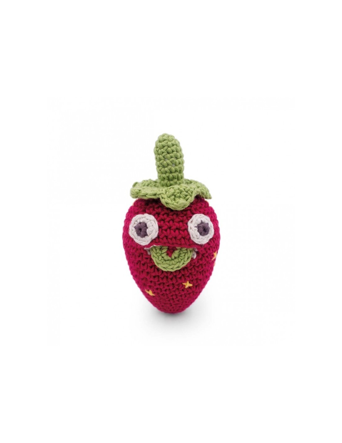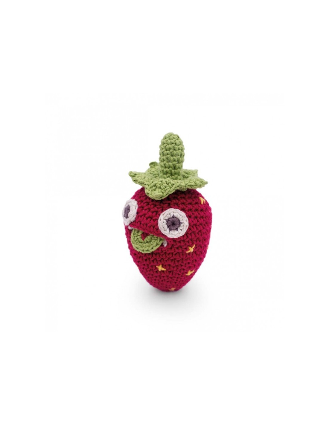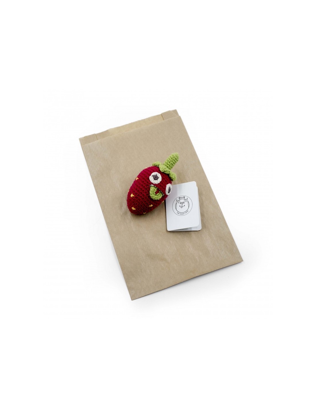 Ce hochet en coton bio convient aux bébés, filles ou garçons, dès la naissance. Il est fait main au crochet. Sa texture et son grelot permettent d’éveiller les sens et sa forme de fraise est pensée pour sensibiliser les bébés à la nature et à l’alimentation saine. Ce hochet est livré avec un sachet en craft écoresponsable, comme s’il sortait du marché.