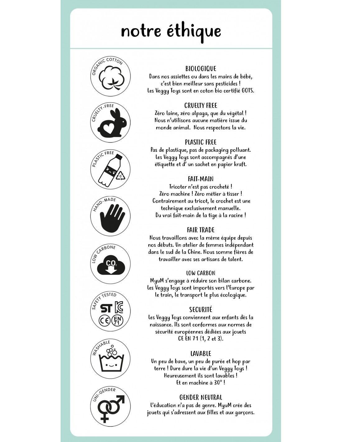 Ce hochet en coton bio est livré dans son sachet en craft,