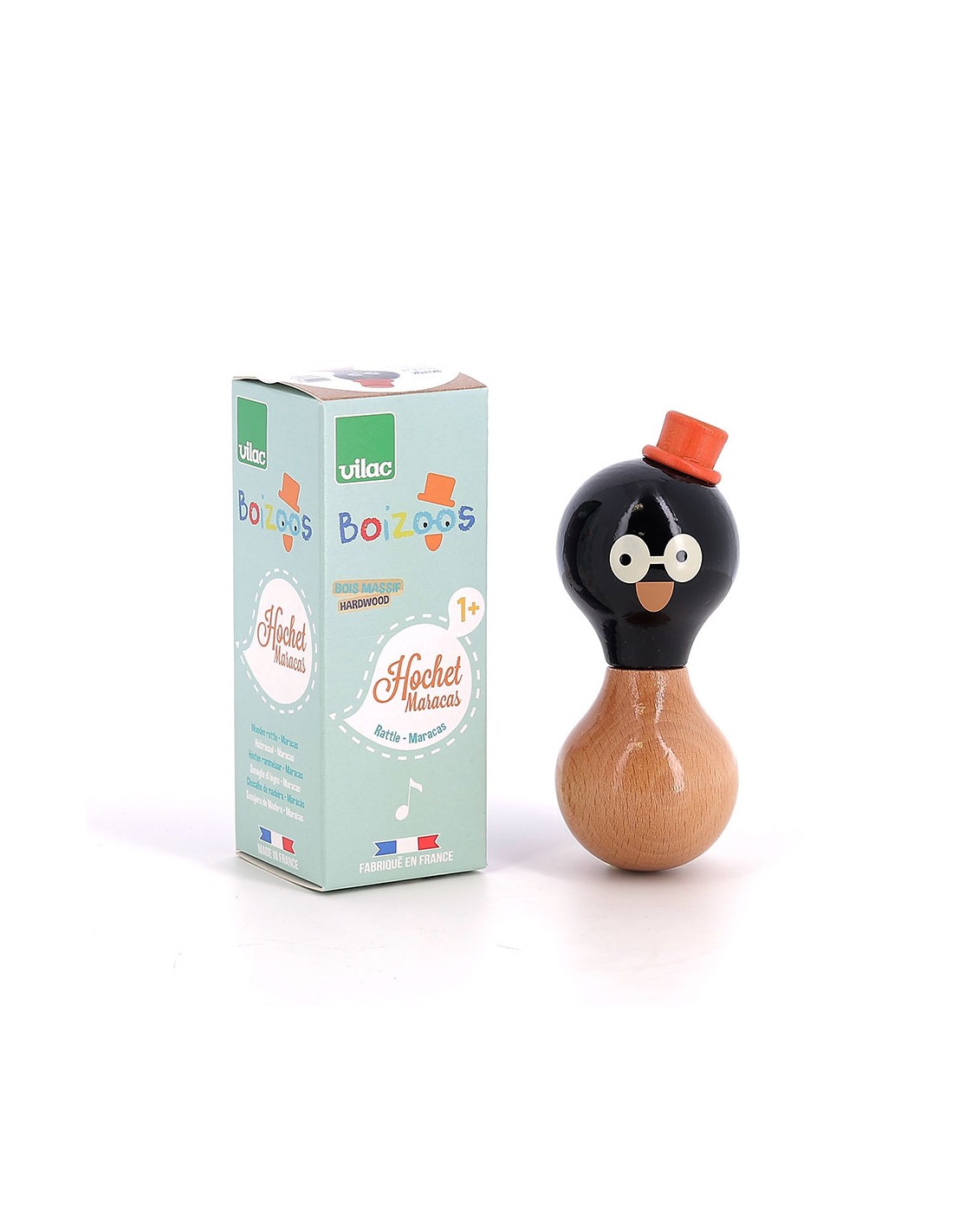 Hochet en bois Boizoos - René le pingouin - VILAC 1+