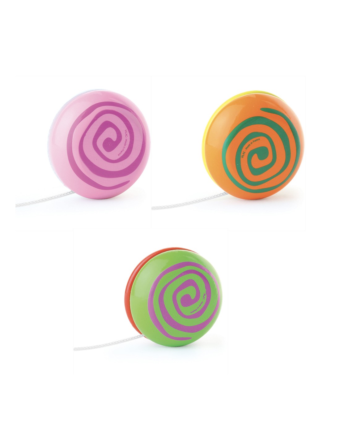 Le yoyo reste un jeu traditionnel incontournable à offrir ou à s'offrir comme une madeleine de Proust. Fabriqués en France, disponibles dans plusieurs coloris, ces yoyos sont laqués suivant un procédé unique d'immersion dans des bains de laque qui fait la renommée de l'atelier de fabrication du Jura de Vilac. • Un yoyo bicolore.