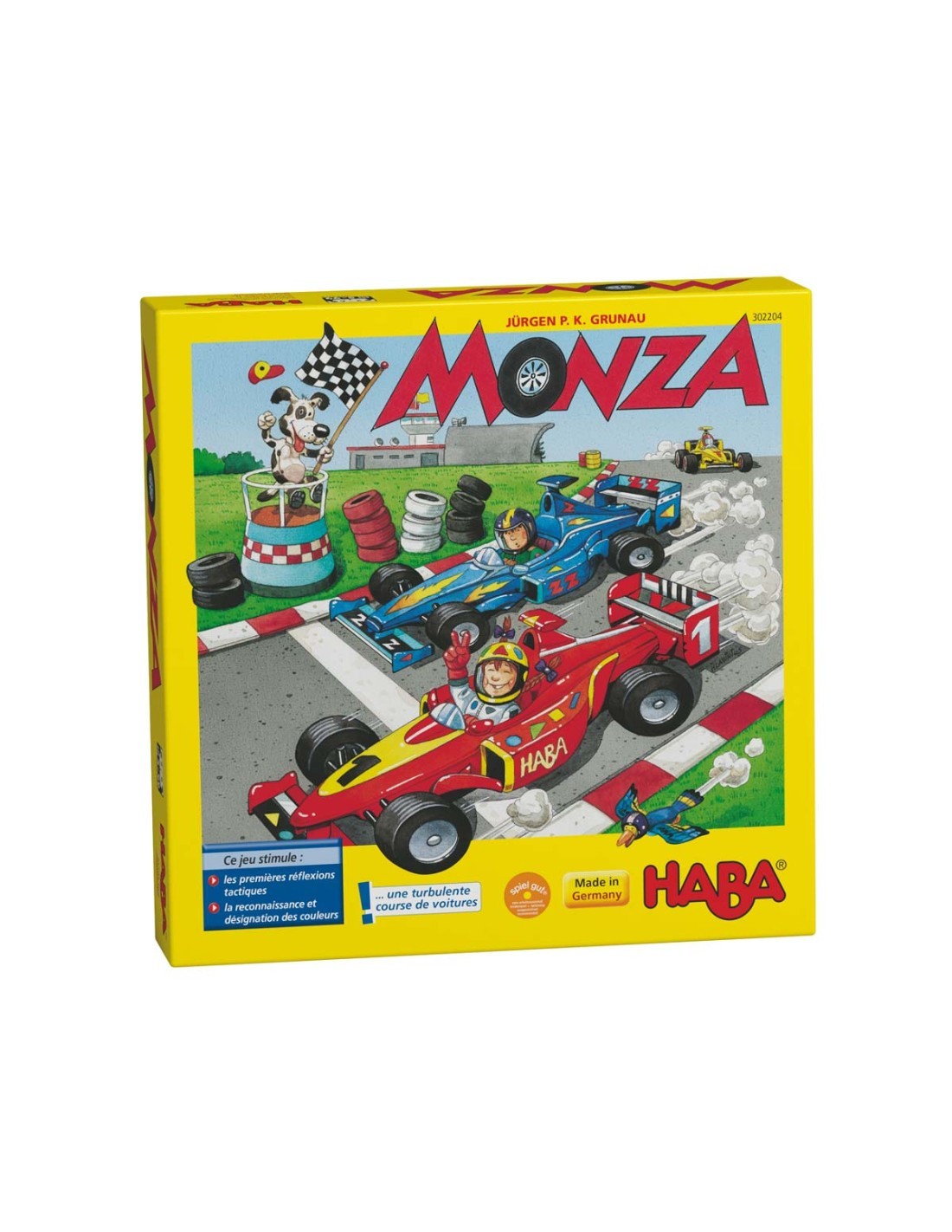 - Le jeu Monza de HABA stimule les premières réflexions tactiques et amène les joueurs à reconnaître et nommer les couleurs de 6 super voitures de course en bois.