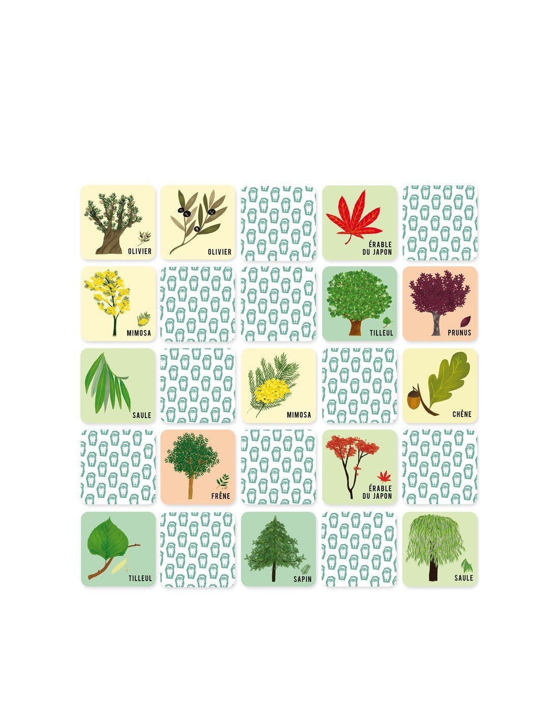 Après avoir décortiqué les 40 cartes du jeu, l'enfant peut s'amuser à rassembler les bonnes paires et à découvrir le nom et la forme des différents arbres et feuilles. Le chêne, le mimosas, le figuier, le platane,…