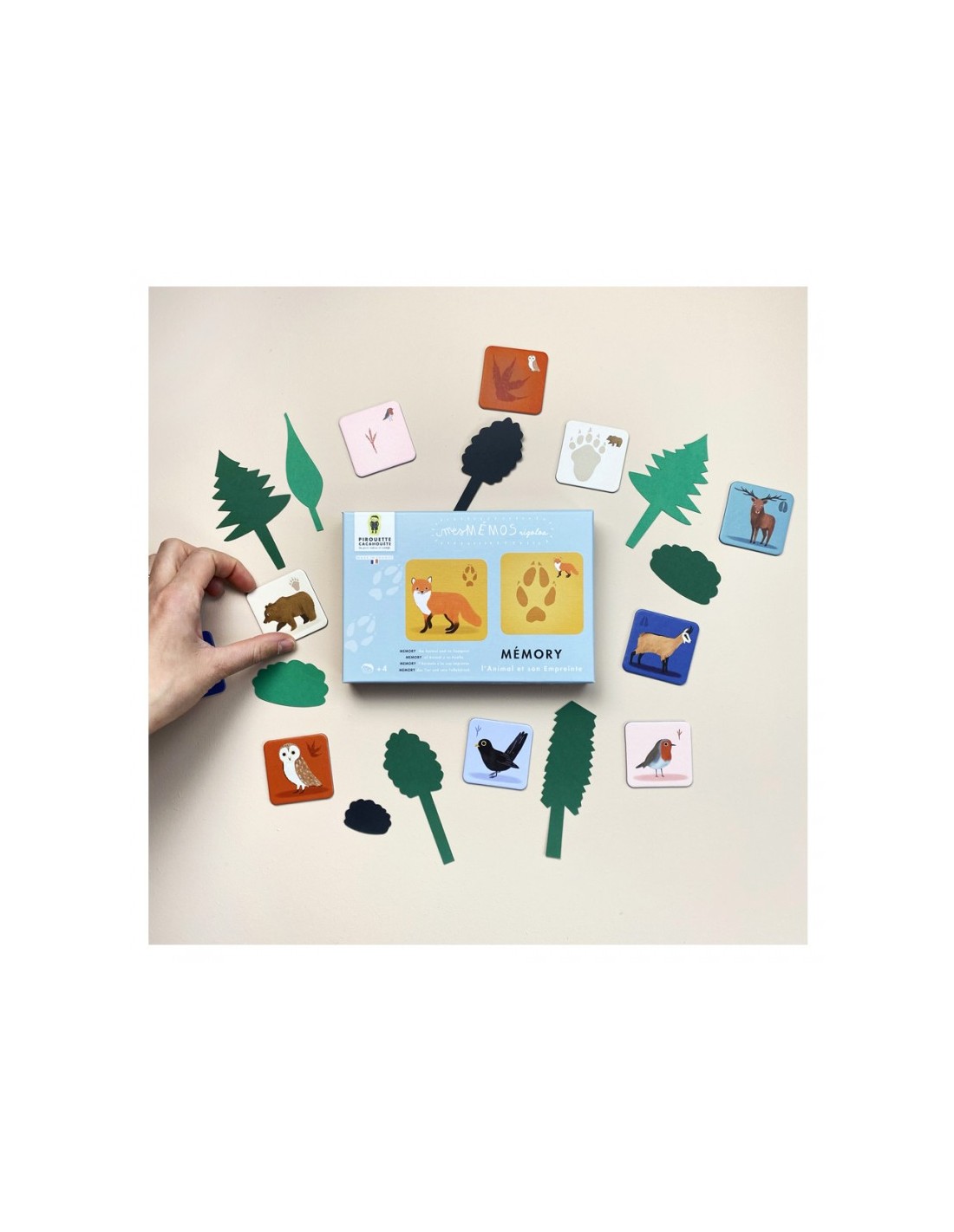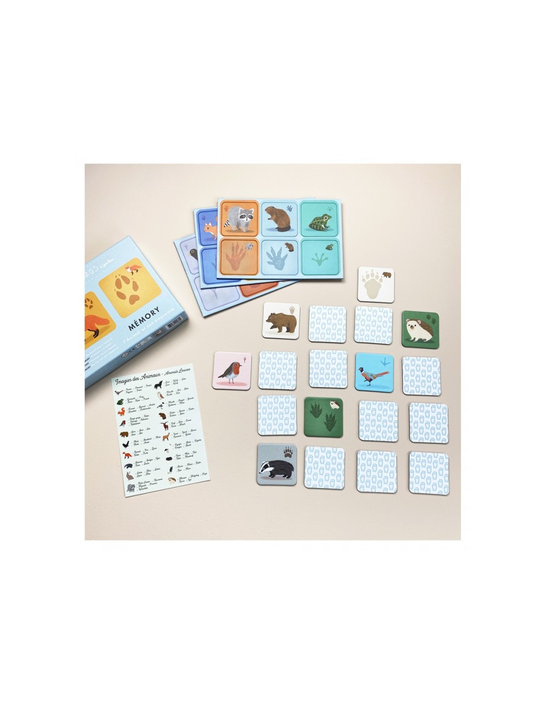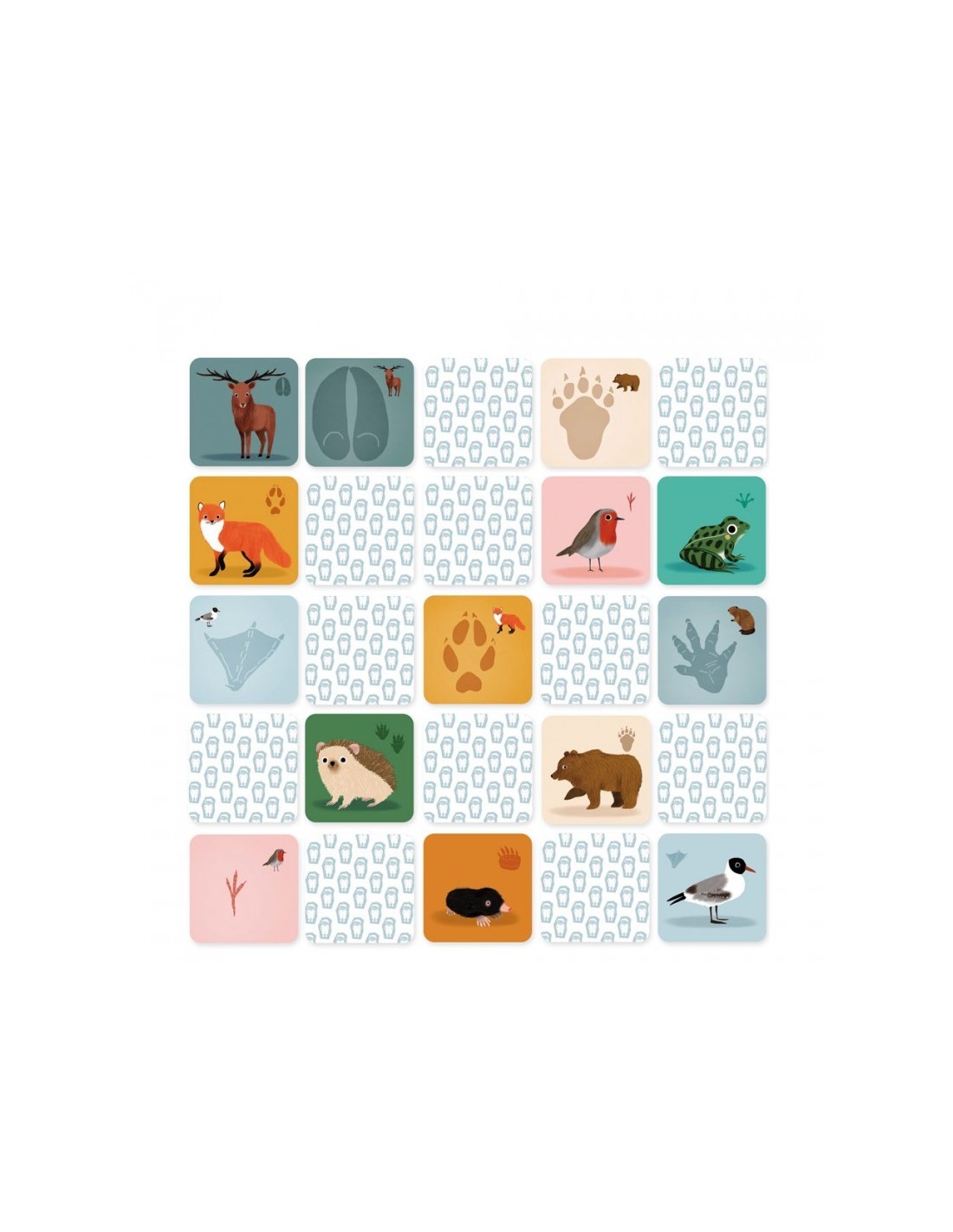 Un jeu de mémory en plusieurs étapes. Les enfants vont tout d'abord s'amuser à décortiquer les 40 cartes du jeu puis à rassembler les bonnes paires pour découvrir les empreintes des différents animaux.