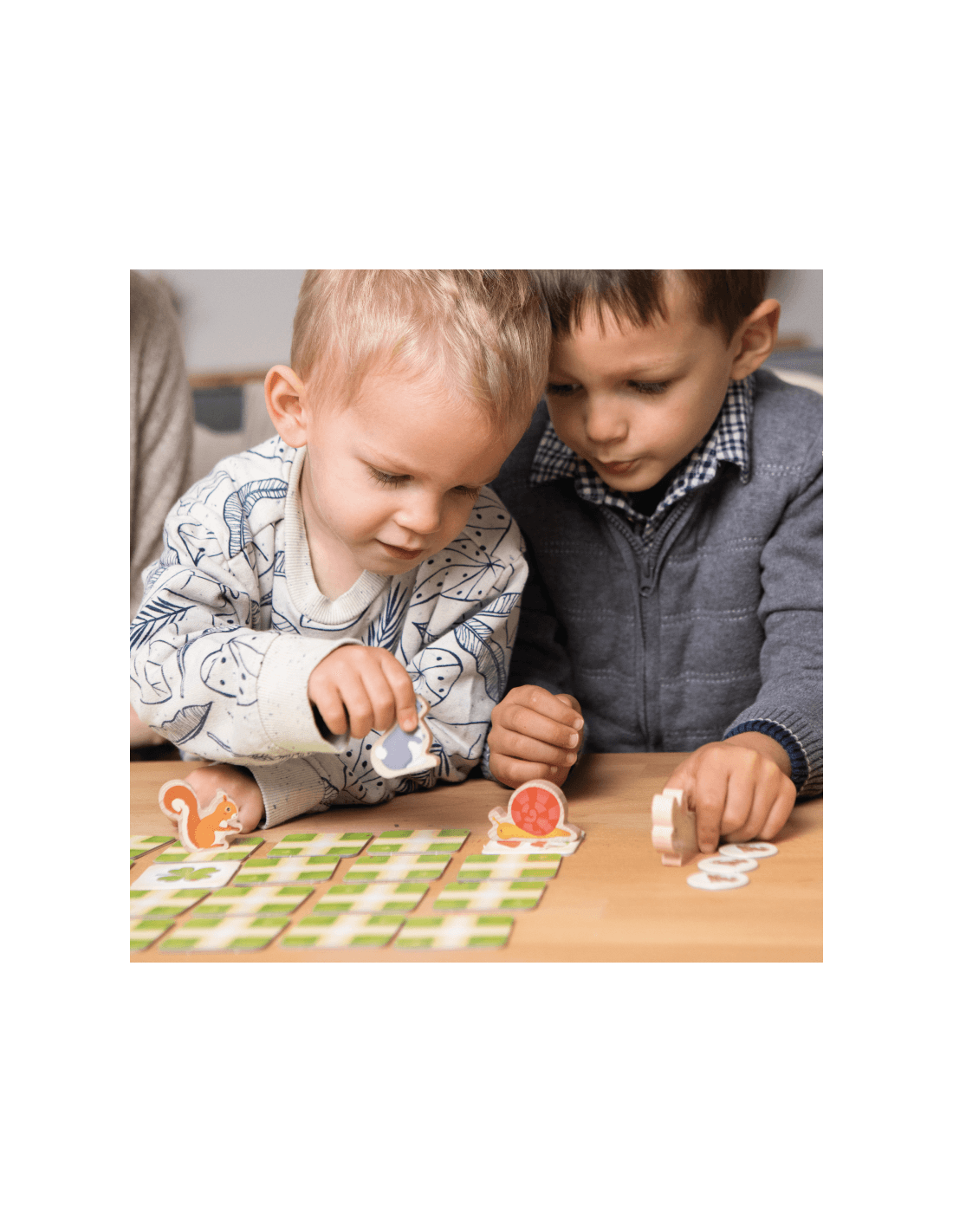 Comment jouer ? L’escargot, le lapin, la souris et l’écureuil ont faim. Tous ensemble, les joueurs tentent de remplir au moins deux de leurs garde-manger. Pour cela, les joueurs déplacent les animaux de tuile en tuile le long des chemins pour trouver les aliments correspondants à chacune des espèces. Mais gare aux prédateurs qui rôdent et à la nuit qui tombe… Si deux garde-manger sont complets avant la tombée de la nuit, tous les joueurs ont gagné !