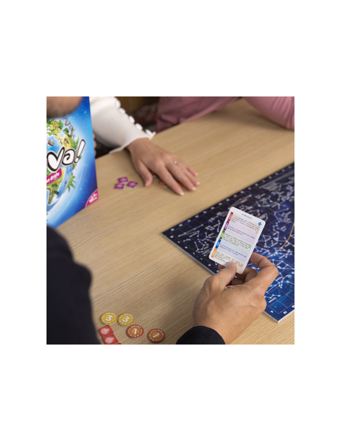 Où ça ? : les joueurs tentent de trouver la réponse sur l’un des 3 plateaux (planisphère, constellations ou cherche et trouve). Le plus précis gagne !
