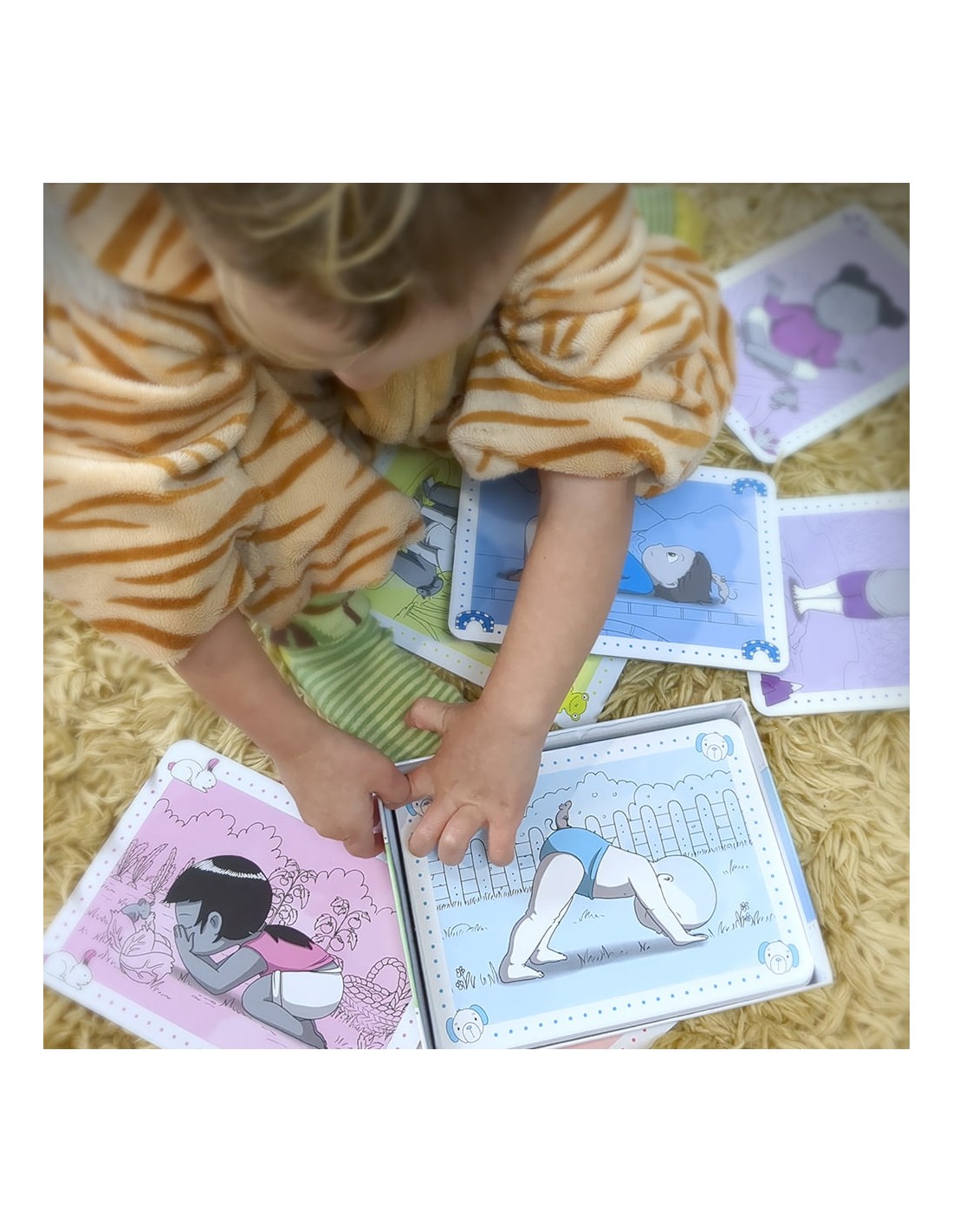 12 cartes cartonnées proposant chacune une posture yoga adaptée aux tout-petits