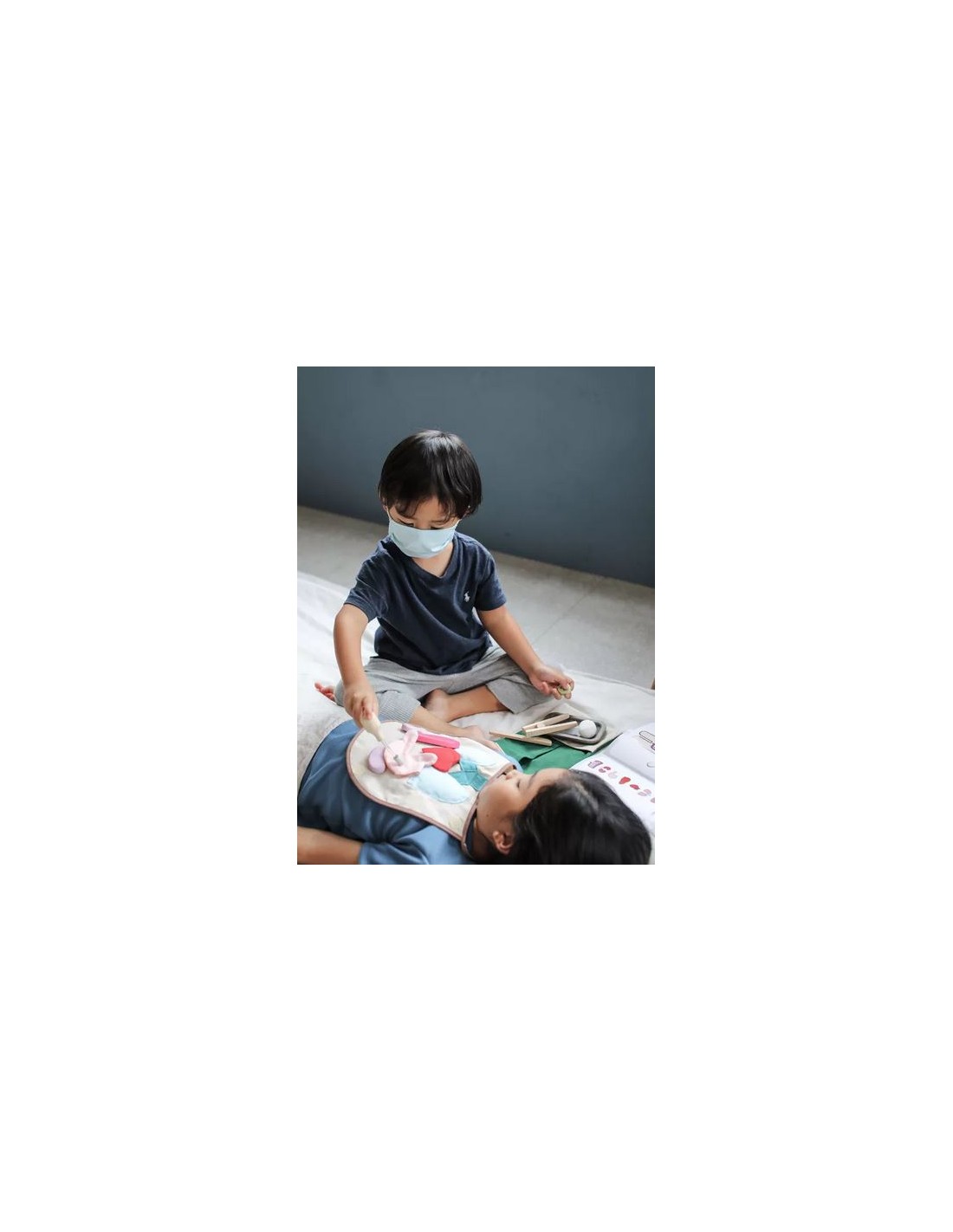 Mon kit de jeune apprenti chirurgien. Apprentissage du corps humain, de nos organes vitaux : connaître leur nom et les localiser dans son corps. Comprendre la notion « d’être opérer ». Développe la dextérité ainsi que la concentration de l’enfant.
