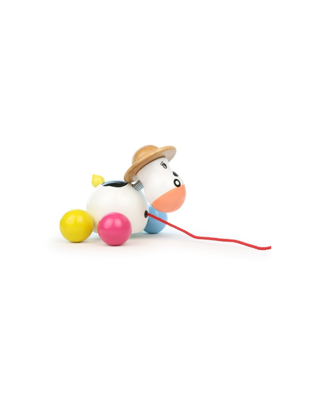 Baby Rosy la vache en bois tourné laqué à traîner. Fabrication française.