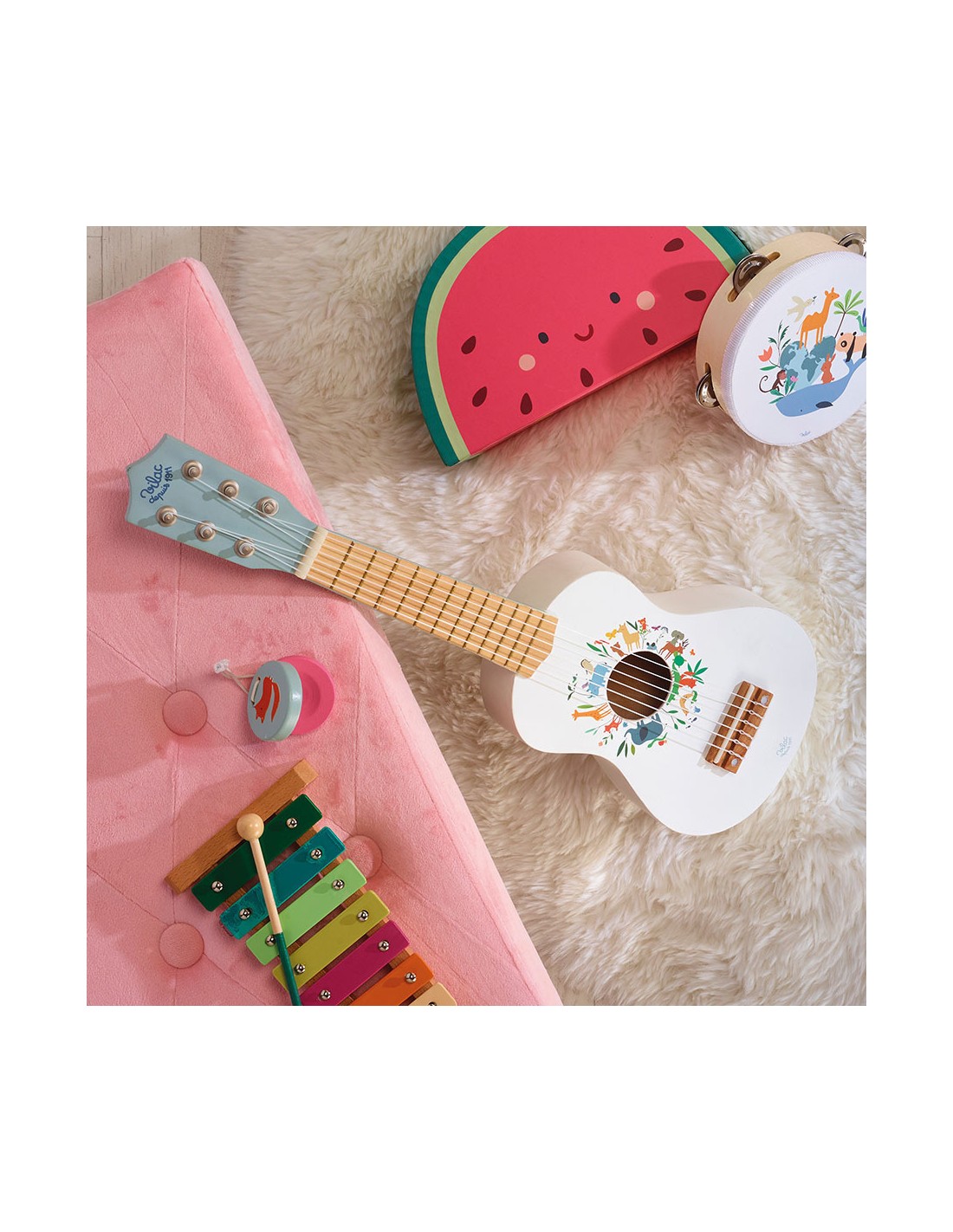 Cette guitare Vilac est une fidèle reproduction miniature du modèle pour les grands. Dotée de six cordes, elle permet à votre petit d'imiter ses idoles tout en poussant la chansonnette. Adaptée à sa taille, votre bambin s'amusera ainsi à se familiariser avec cet instrument et s'improvisera musicien ou rockeur ! Cette petite guitare développera les capacités artistiques et le sens de l'écoute de votre bout de chou.