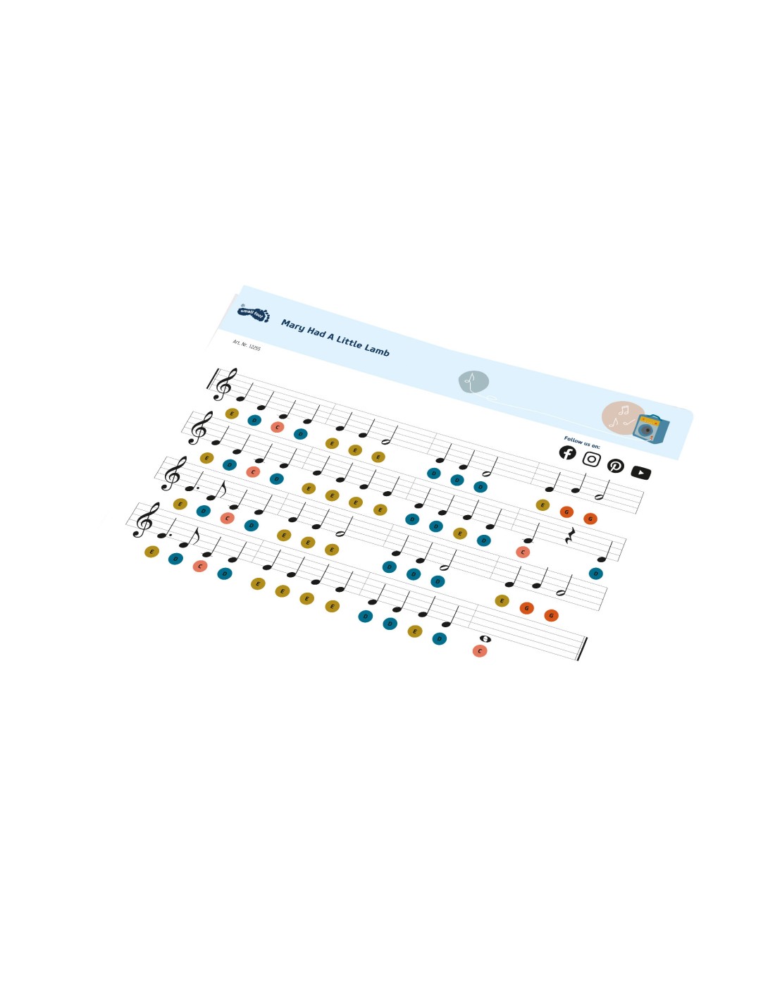 - avec barres sonores à code couleur sur le xylophone et feuille de musique jointe