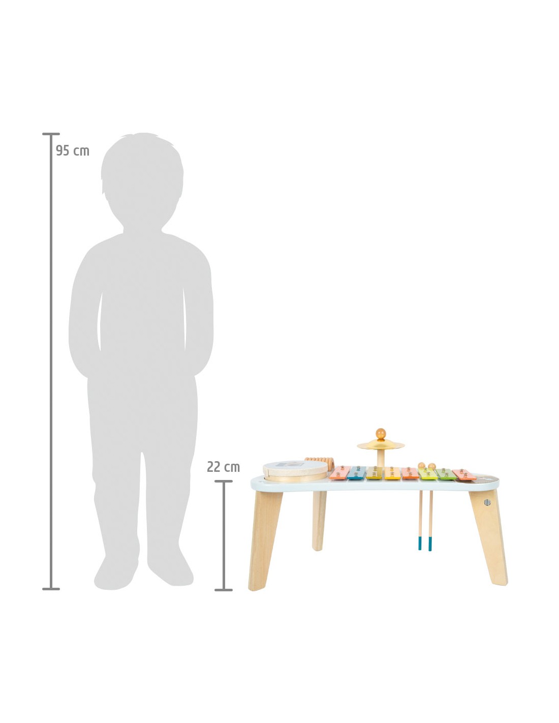 Un grand plaisir multifonctionnelle de faire de la musique et d'apprendre ! Visuellement, la table de musique et de son impressionne par son design gai et par sa combinaison harmonieuse de bois naturel et de tons bleus modernes ! En plus de la perception acoustique, les instruments développent de manière ludique le sens du rythme. le tact et une première compréhension des tons.