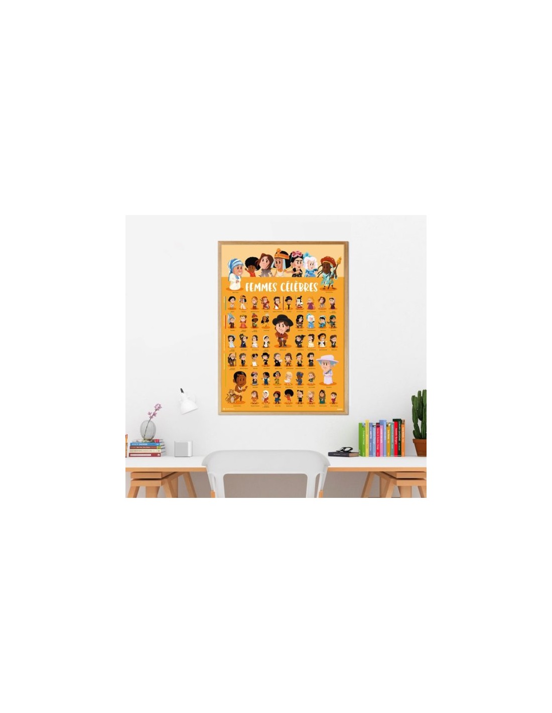 Cette affiche présente un grand nombre de femmes célèbres, de toutes nationalités et de toutes les époques historiques. L’idée est d’encourager les enfants à s’intéresser aux différentes cultures, de les familiariser avec l’histoire du monde et de leur montrer des exemples de femmes qui ont été au bout de leur engagement. Une notice explicative permet de découvrir une courte biographique de chacune des femmes présentées.