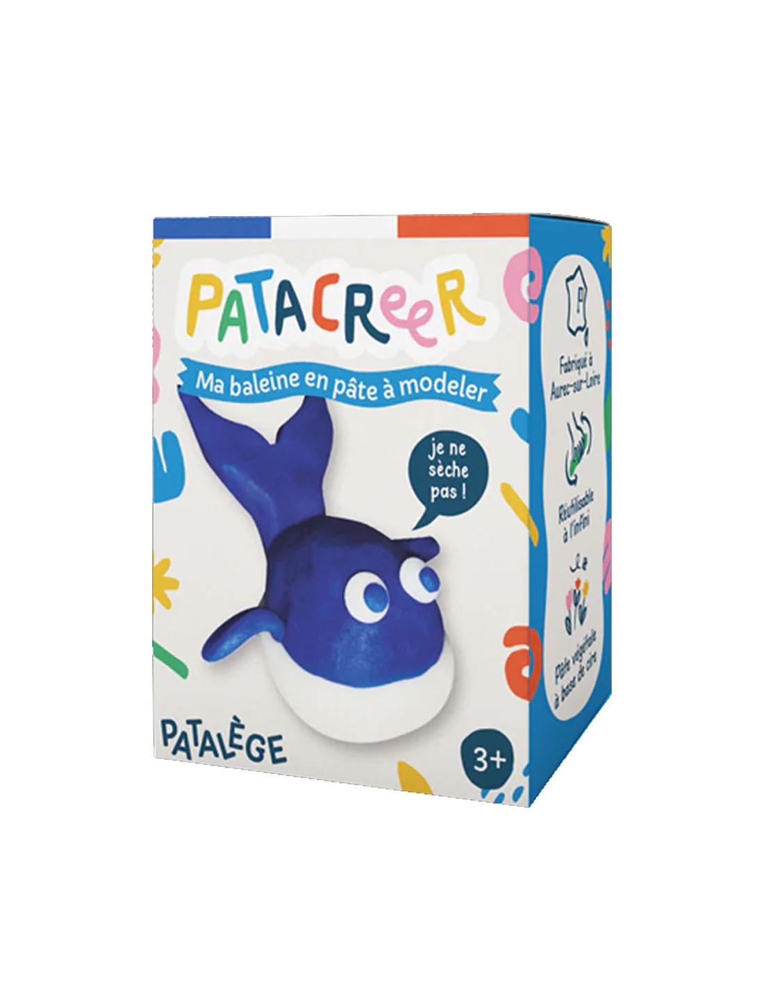Découvrez notre kit de loisir créatif contenant 4 sticks de pâte à modeler Made in France et une notice détaillée pour créer votre baleine. Avec PATALEGE, une pâte à modeler qui ne sèche pas, laissez libre cours à votre imagination tout en préservant la planète et sensibilisez vos enfants à la protection des animaux marins !"