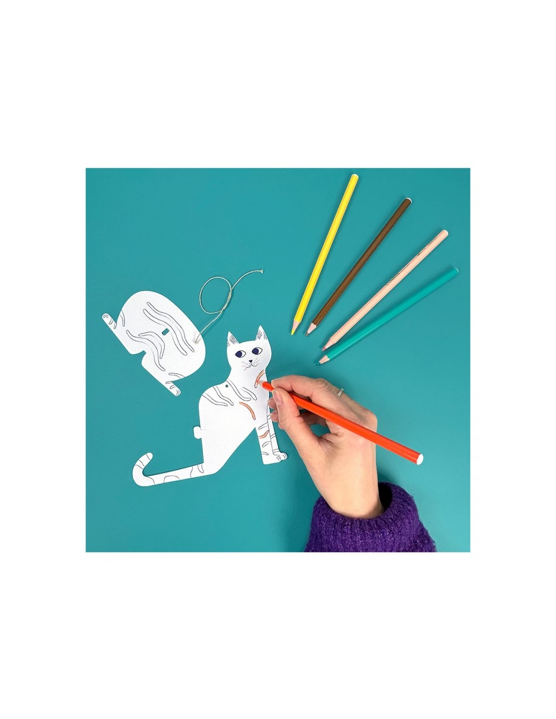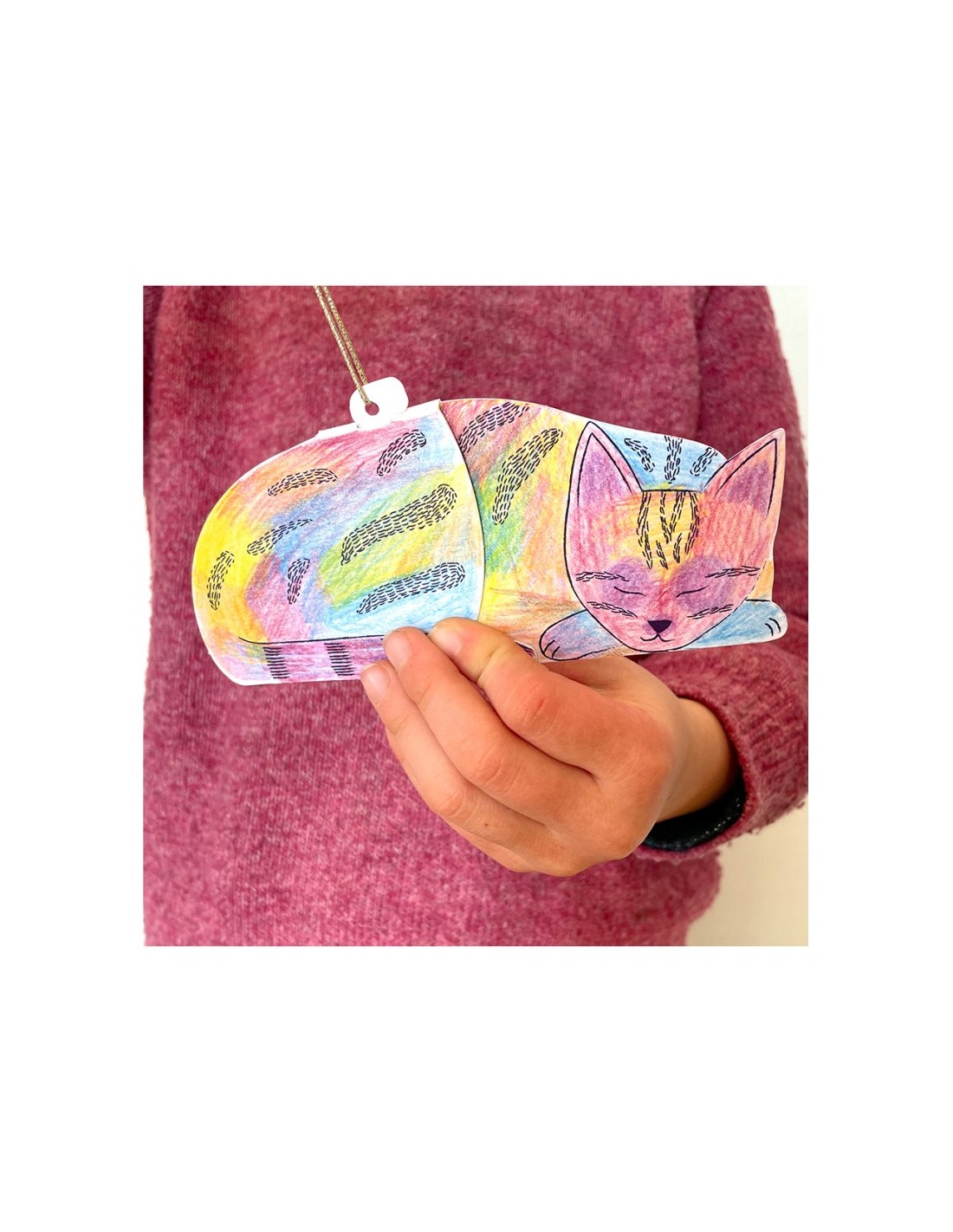 Une fois assemblés et colorés, ces chats deviendront de jolis compagnons de décoration : à poser sur une étagère ou à suspendre pour animer la chambre des enfants.