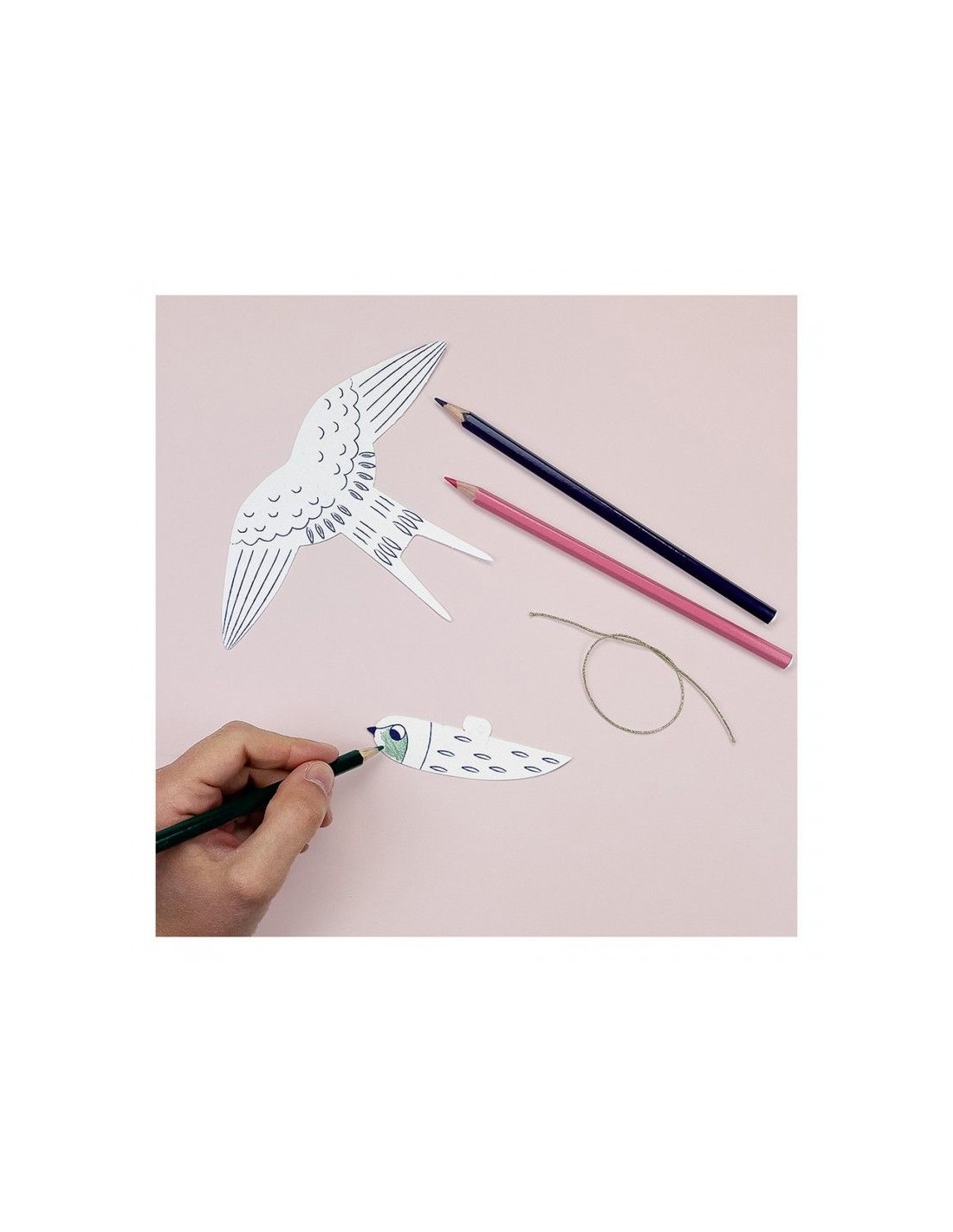 1 hirondelle en papier cartonné à assembler et à colorier.