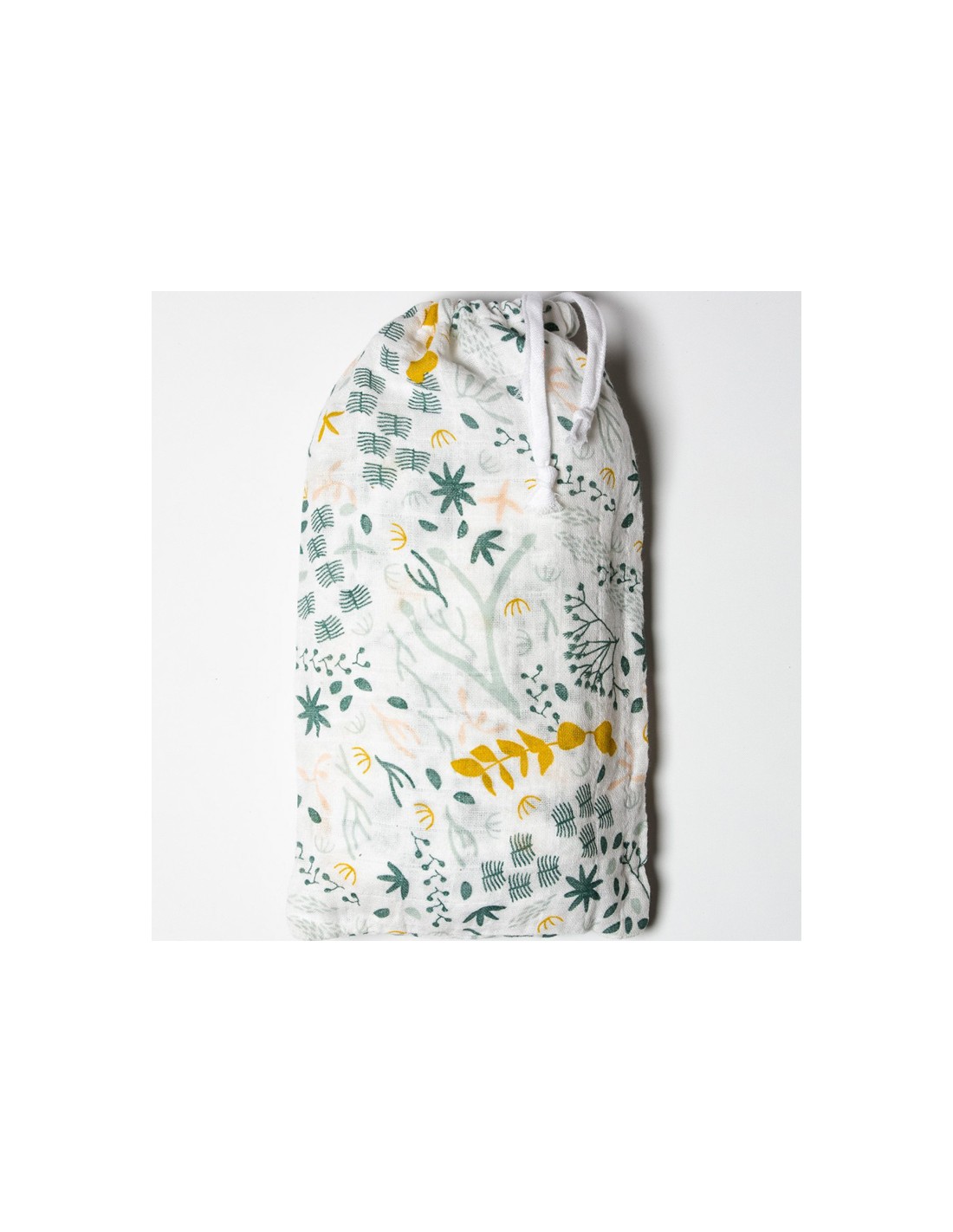 Ce lange est livré dans une pochette en Coton Bio assortie fermée par un petit cordon coulissant. Une excellente idée pour un complément de cadeau de naissance bio et utile.