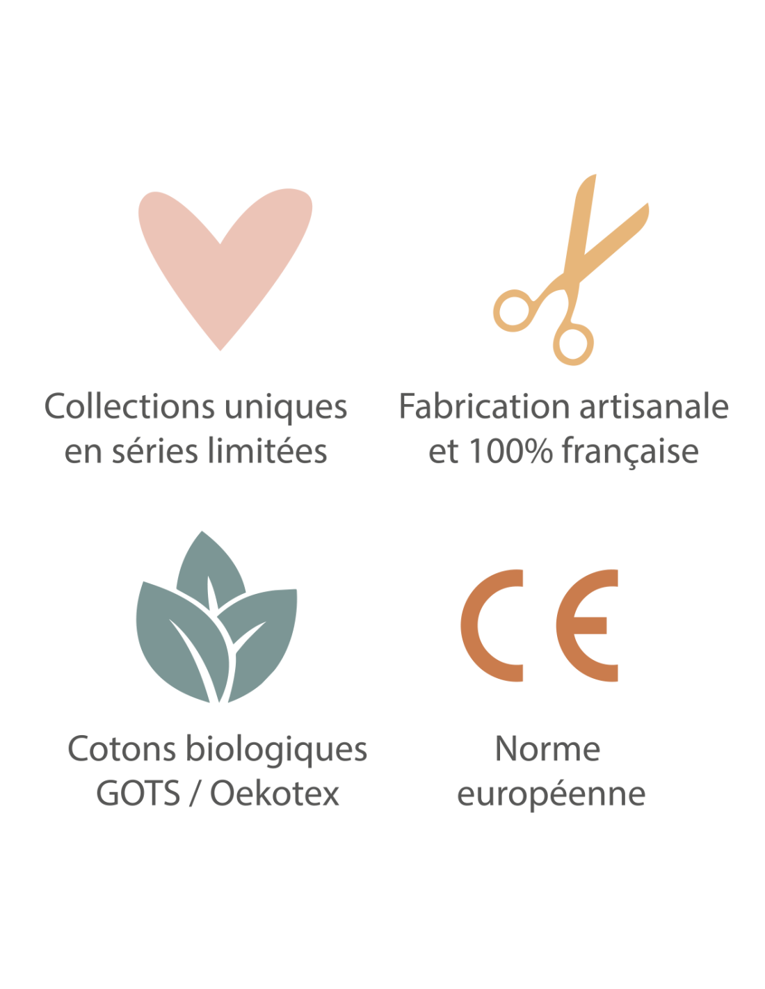 - Tissus doux et sûrs, certifiés sans substances nocives