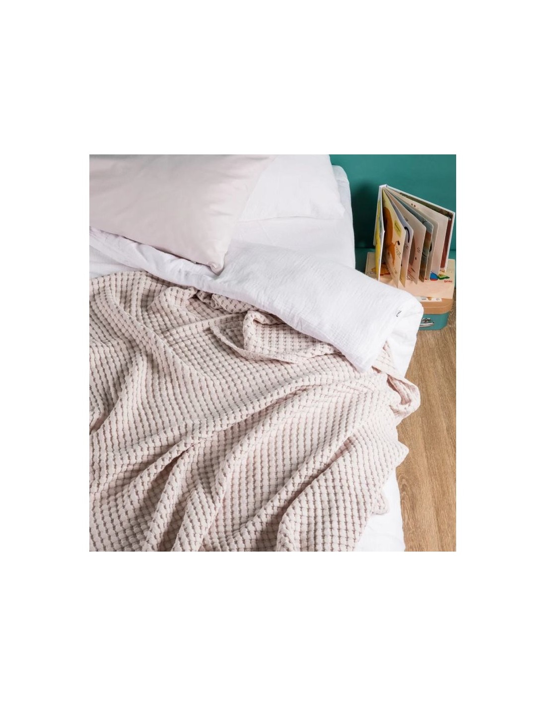 Un plaid bébé en Coton Bio tout doux au coloris tendre qui sera idéal pour réchauffer votre enfant. Cette couverture en Coton Bio, garantie sans traitement chimique ajouté, respectera parfaitement la peau sensible de bébé. Avec son effet gaufré, elle apportera une touche décorative dans la chambre de votre enfant.