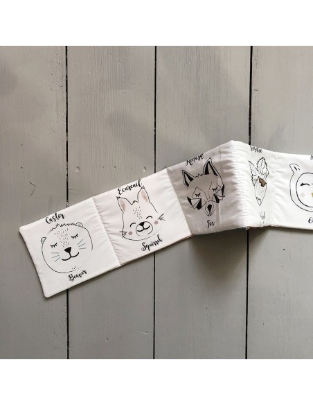 Bébé rêve d’explorer le monde? Le livre d’éveil Animaux de la forêt en tissu va attirer toute son attention grâce à ses illustrations animales. D’un côté une version colorée et de l’autre une version en noirs & blanc plus contrastée pour les premiers mois de bébé. Autant de découvertes visuelles et tactiles pour les périodes de jeu. Son tissu souple, imprimé avec des encres à l’eau Oekotex, et sa forme accordéon de 6 pages permet à bébé de l’attraper facilement pour le suivre dans toutes ses aventures.