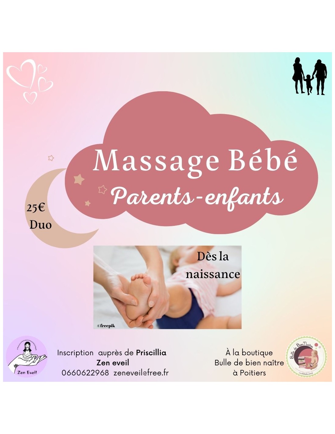 Atelier Massage bébé - duo 1 parent/1 bébé - Zen Eveil