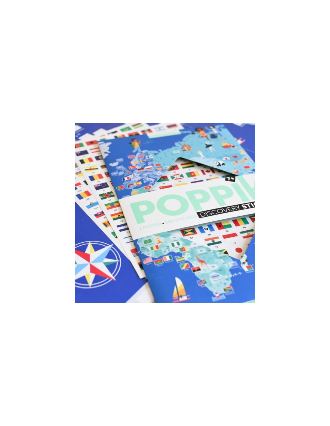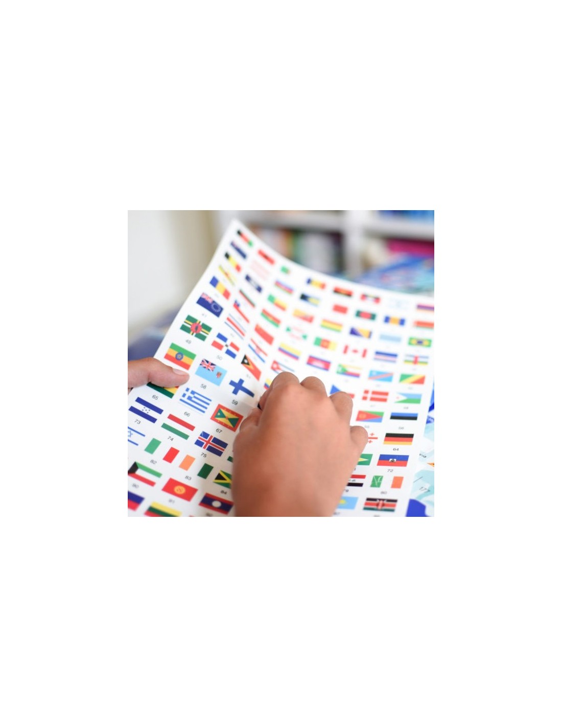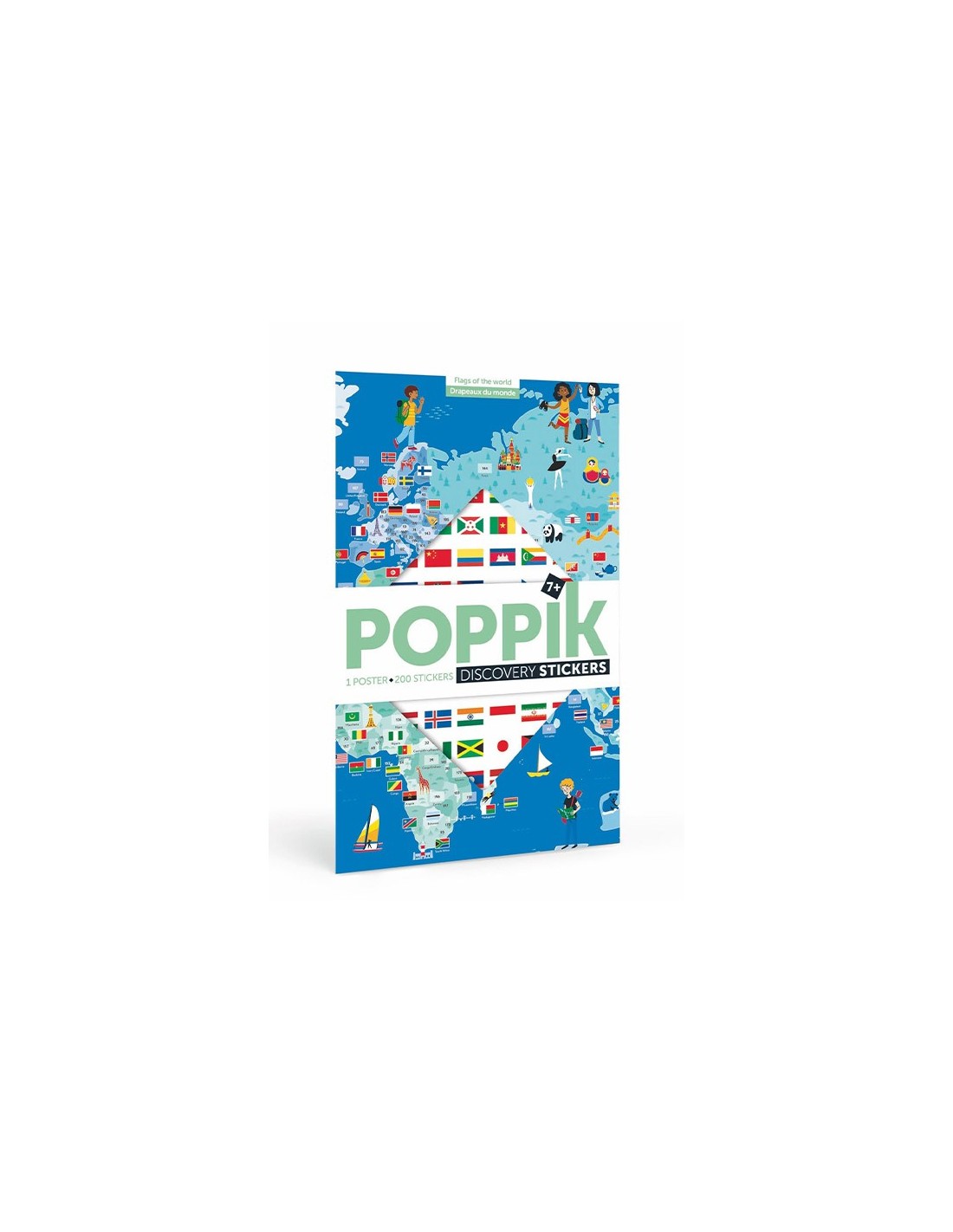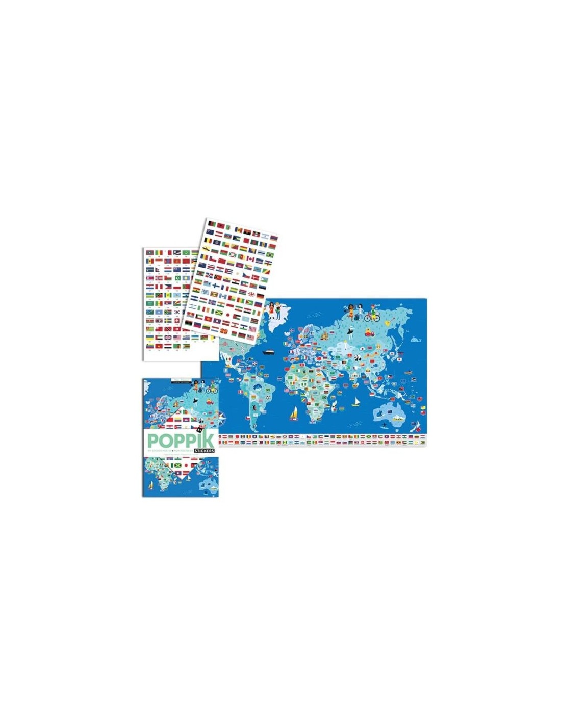 – Le poster des drapeaux du monde et les autocollants se rangent facilement dans la pochette. Le poster peut aussi être roulé pour éviter les plis sur les stickers.