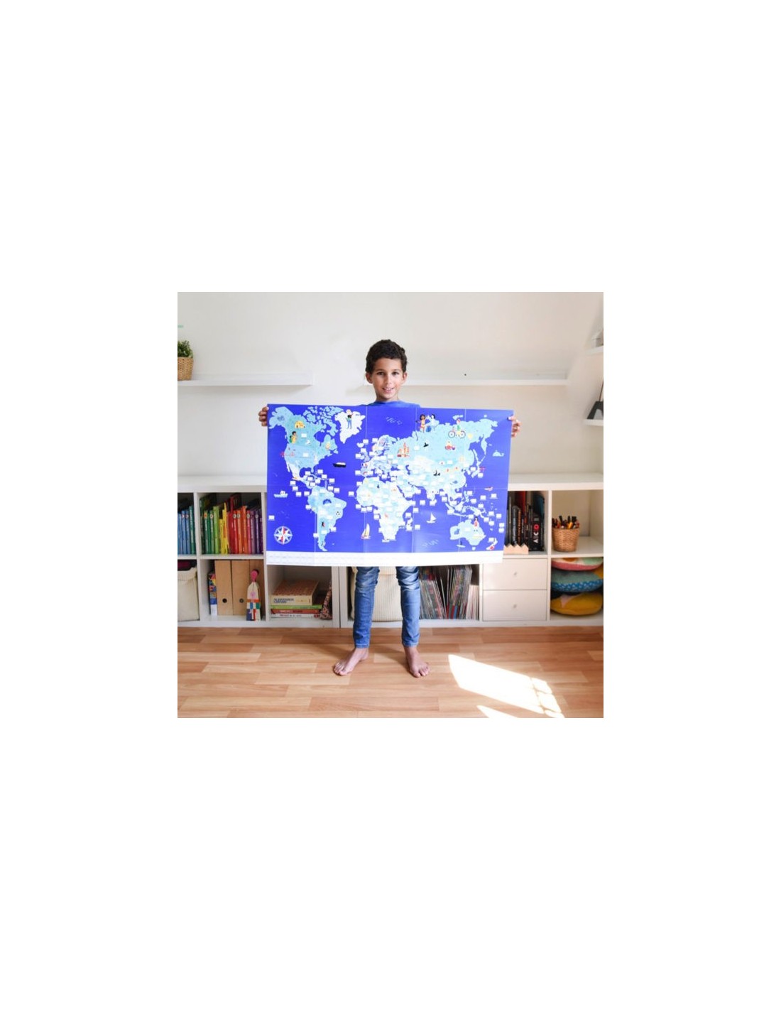 – Les enfants peuvent jouer à plusieurs et s’entraider, grâce au format géant (100 x 68 cm) et au grand nombre d’autocollants repositionnables.