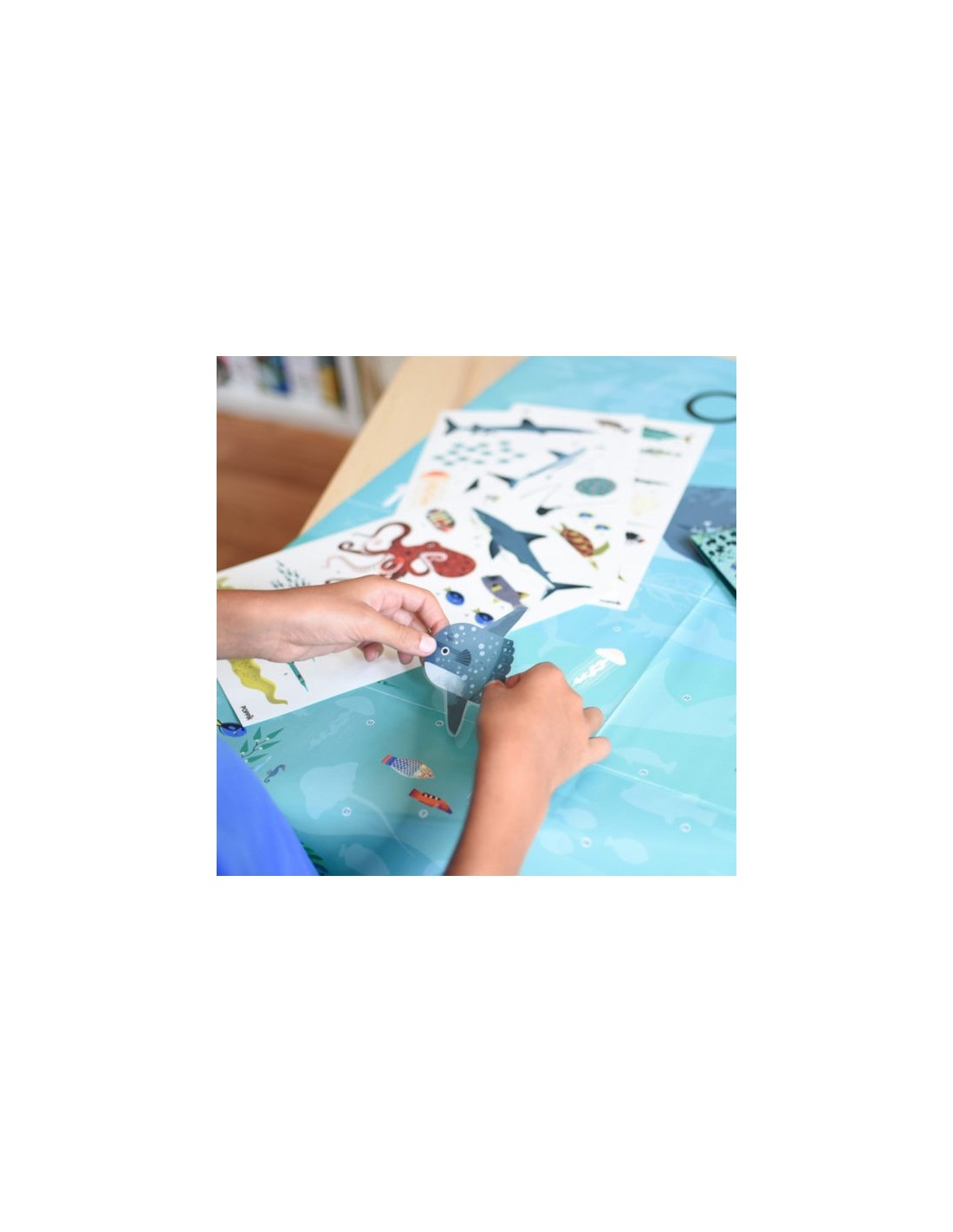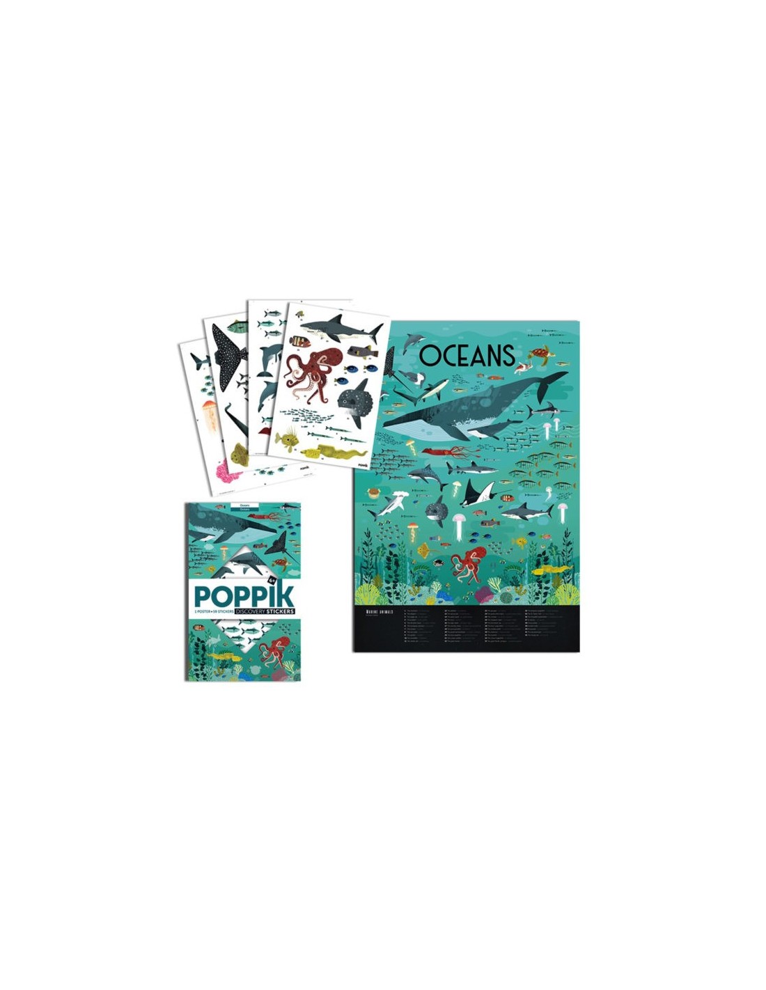 – Cette affiche éducative des océans doit être complétés avec près de 60 stickers repositionnables de très grande taille. Ces stickers représentent des animaux marins de toutes sortes : poissons, mammifères, méduses et autres coraux, tous plus beaux les uns que les autres.