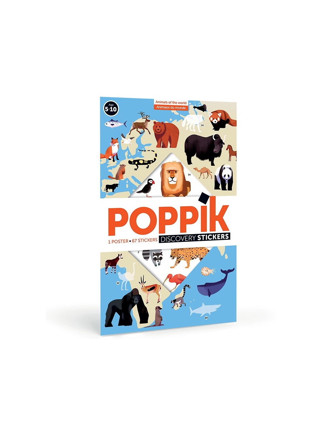 Avec cette grande affiche en stickers, les enfants vont découvrir plus de 70 animaux du monde, parmi les plus emblématiques : kangourou, tigre, orang-outan, koala, ours brun, maki catta… Les enfants vont apprendre en s’amusant à les situer sur la carte du monde dans leur habitat naturel, sur tous les continents. Cette activité en stickers est un excellent moyen de mémoriser le nom de ces animaux et de situer leur lieu de vie sur la terre.