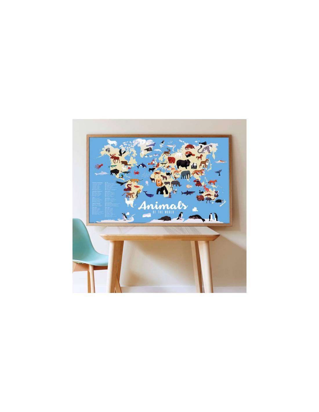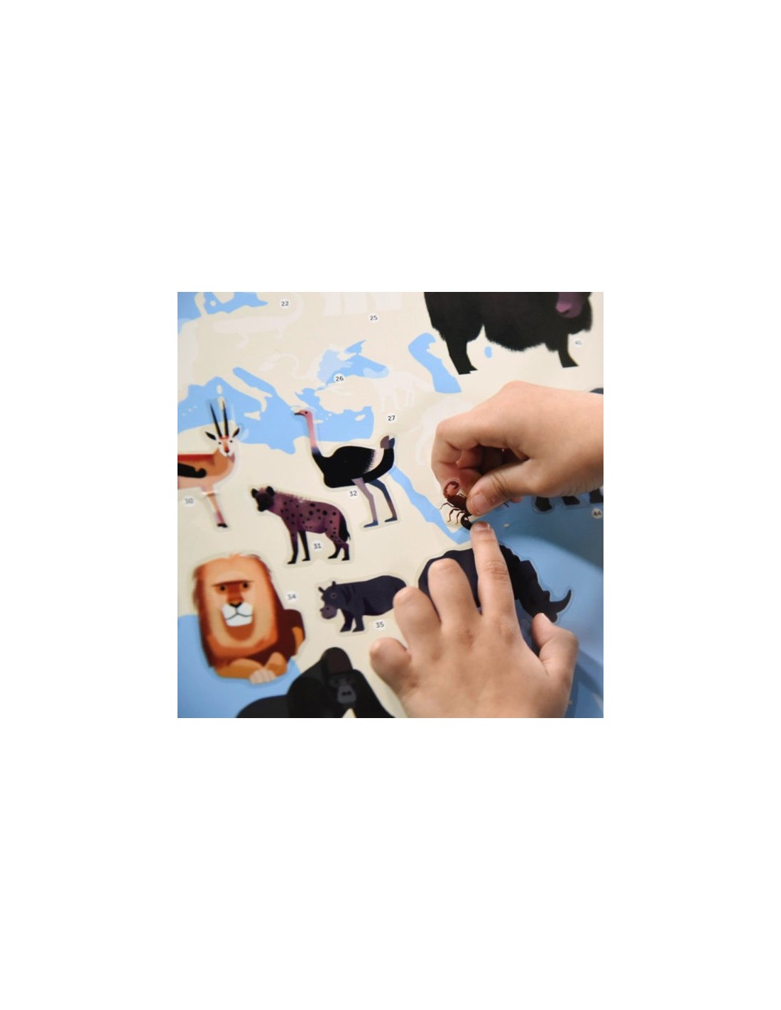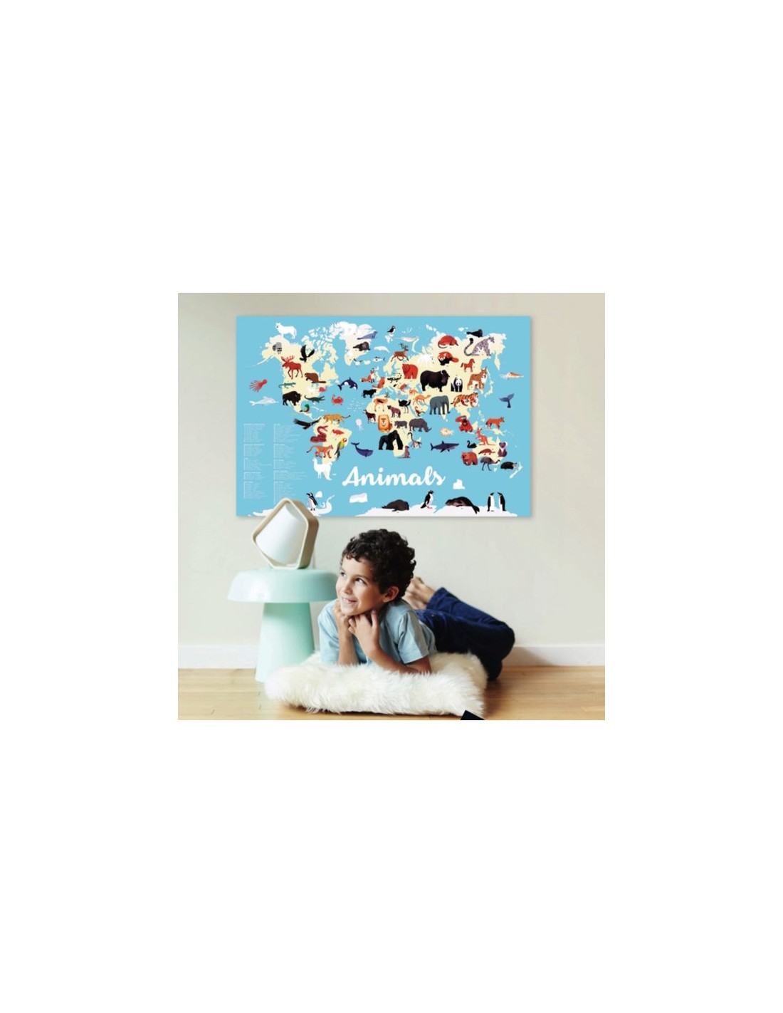 – Ce poster animaux sous forme de carte du monde développe la curiosité et les connaissances sur un sujet qui passionne les enfants : les animaux du monde. C’est en manipulant que les enfants apprennent !