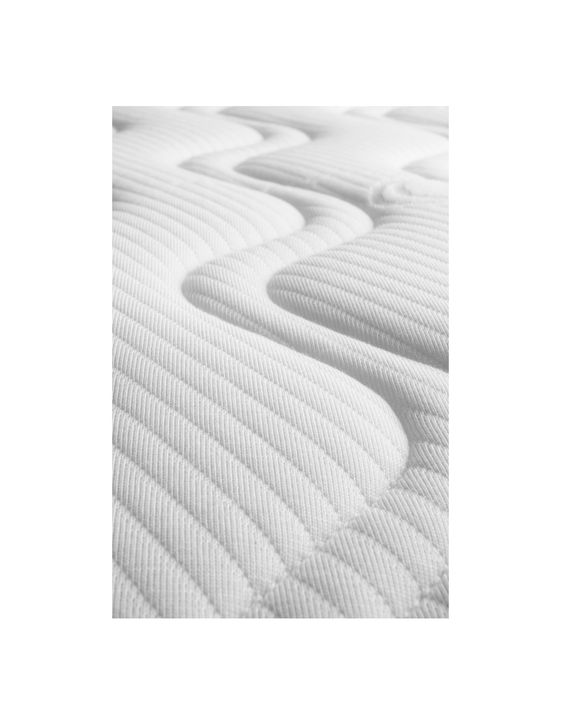 Housse du matelas : réalisée en Polyester et Tencel, matière technique et naturelle fabriquée à partir de la pulpe de bois. Le Polyester est utilisé pour passer la norme non-feu et ainsi ne mettre aucun produit chimique.